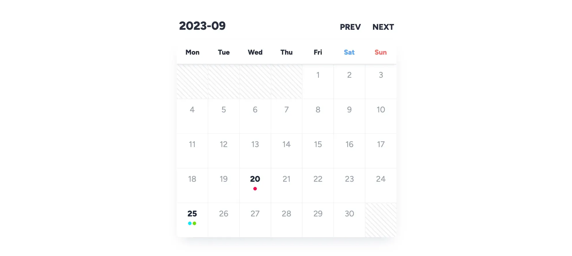 スワイプアニメーション付きスケジュールカレンダー